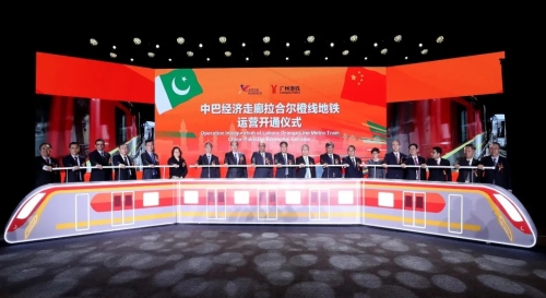 10月25日,巴基斯坦拉合爾軌道交通橙線項(xiàng)目在中國北京和巴基斯坦旁遮普省首府拉合爾市,以視頻連線方式隆重舉行運(yùn)營開通儀式,這標(biāo)志著巴基斯坦駛?cè)氲罔F時(shí)代。國家發(fā)展和改革委員會(huì)秘書長趙辰昕,中國兵器工業(yè)集團(tuán)有限公司董事長焦開河、總經(jīng)理劉大山、副總經(jīng)理植玉林,巴基斯坦駐華大使莫恩·烏·哈克、巴基斯坦旁遮普省首席部長薩爾達(dá)爾·烏斯曼·布茲達(dá)爾、中國駐巴基斯坦拉合爾總領(lǐng)事龍定斌等出席開通儀式。