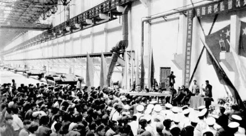 1959年是中華人民共和國建國十周年,工廠接受了生產(chǎn)32輛坦克交部隊(duì)編隊(duì)參加檢閱的任務(wù)。強(qiáng)烈的榮譽(yù)感使全廠上下歡欣鼓舞、斗志旺盛。“決心書”、“保證書”像紛揚(yáng)的雪花貼滿墻壁。“天大的困難也要戰(zhàn)勝,堅(jiān)決為國爭光,為廠爭譽(yù)”的豪情在人們心中激蕩。