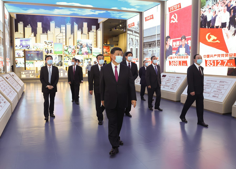 新近落成的中國共產(chǎn)黨歷史展覽館巍然矗立,氣勢恢宏。下午3時20分許,習近平等黨和國家領(lǐng)導同志來到這里,步入展廳參觀展覽。展覽以“不忘初心、牢記使命”為主題,精心設(shè)計了“建立中國共產(chǎn)黨 奪取新民主主義革命偉大勝利”、“成立中華人民共和國 進行社會主義革命和建設(shè)”、“實行改革開放 開創(chuàng)和發(fā)展中國特色社會主義”、“推進中國特色社會主義進入新時代 全面建成小康社會 開啟全面建設(shè)社會主義現(xiàn)代化國家新(人民日報)征程”4個部分,通過2600余幅圖片、3500多件套文物實物,第一次全方位、全過程、全景式、史詩般展現(xiàn)中國共產(chǎn)黨波瀾壯闊的百年歷程,濃墨重彩地反映黨的不懈奮斗史、不怕犧牲史、理論探索史、為民造福史、自身建設(shè)史,使人們深刻認識到紅色政權(quán)來之不易、新中國來之不易、中國特色社會主義來之不易,深刻認識到中國共產(chǎn)黨為什么能、馬克思主義為什么行、中國特色社會主義為什么好。