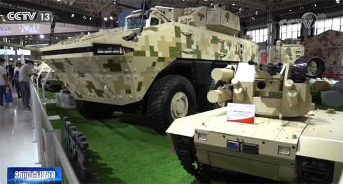 總臺(tái)央視記者 吳天白:我們可以看到,本屆航展兵器館裝備的排列不再是同類型裝備相鄰排列,履帶式的坦克就會(huì)搭配輪式無人車,而輪式裝甲車就會(huì)配備履帶式無人車進(jìn)行輔助,采用了一種“輪履結(jié)合”的組合形式。