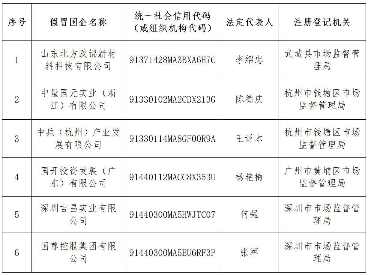 近期,有不法分子通過(guò)偽造相關(guān)材料等方式,將企業(yè)注冊(cè)為中國(guó)兵器工業(yè)集團(tuán)有限公司下屬子公司,以我集團(tuán)子公司名義開(kāi)展業(yè)務(wù),進(jìn)行虛假宣傳。經(jīng)我集團(tuán)核實(shí),以下公司及其下設(shè)各級(jí)子公司均為假冒國(guó)企,與我集團(tuán)無(wú)任何隸屬或股權(quán)關(guān)系,也不存在任何投資、合作、業(yè)務(wù)等關(guān)系,其一切行為均與我集團(tuán)無(wú)關(guān)。請(qǐng)社會(huì)各界提高警惕,注意防范風(fēng)險(xiǎn),如發(fā)現(xiàn)其違法犯罪行為,請(qǐng)盡快到公安機(jī)關(guān)報(bào)案。 特此聲明。 兵器工業(yè)集團(tuán)法律合規(guī)管理部 2023年9月1日 |