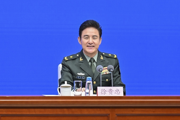 8月20日,國務(wù)院新聞辦公室在北京舉行新聞發(fā)布會(huì),閱兵領(lǐng)導(dǎo)小組辦公室副主任、中央軍委聯(lián)合參謀部作戰(zhàn)局少將副局長(zhǎng)吳澤棵,中國人民解放軍中部戰(zhàn)區(qū)閱兵指揮機(jī)構(gòu)辦公室常務(wù)副主任、政治工作部少將副主任徐貴忠介紹閱兵準(zhǔn)備工作有關(guān)情況,并答記者問。這是徐貴忠在介紹情況。